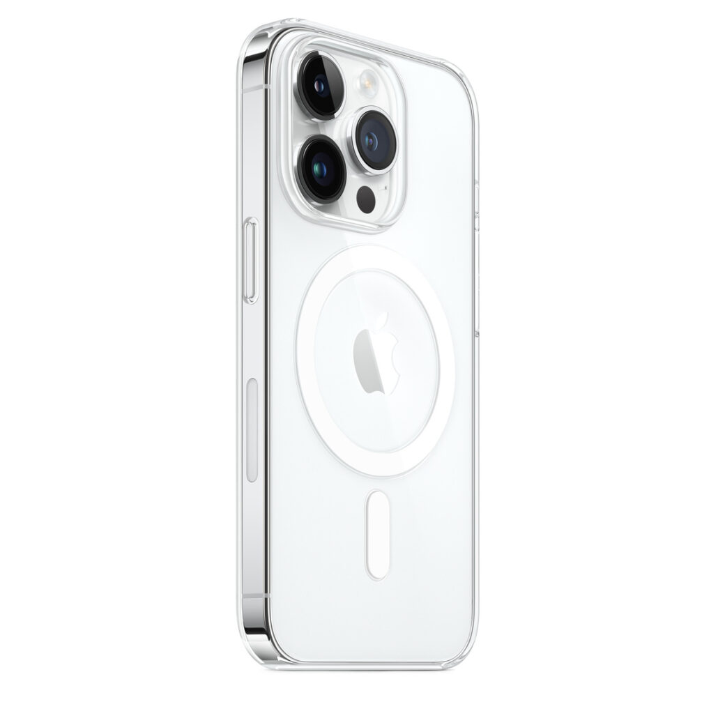 Fine, légère et facile à tenir, cette coque transparente d’ Apple met en valeur la finition colorée de l’iPhone 14 Pro, tout en vous offrant une protection supplémentaire. Fabriquée à partir d’un mélange de polycarbonate optiquement transparent et de matériaux souples, elle épouse parfaitement la forme des boutons de l’iPhone. Un revêtement anti-rayures a été appliqué à l’extérieur et à l’intérieur. De plus, tous les matériaux et revêtements sont conçus pour résister au jaunissement. Avec des aimants intégrés qui s’adaptent parfaitement à l’iPhone 14 Pro, la coque se fixe avec une facilité presque magique et offre une charge sans fil plus rapide. Pour charger votre iPhone, laissez-le simplement dans la coque et fixez votre chargeur MagSafe ou placez-le sur votre chargeur certifié Qi. Comme toutes les coques Apple, elle a subi des milliers d’heures de tests lors de la conception et de la fabrication. Elle est non seulement superbe sur votre iPhone, mais le protège également des rayures et des chutes.