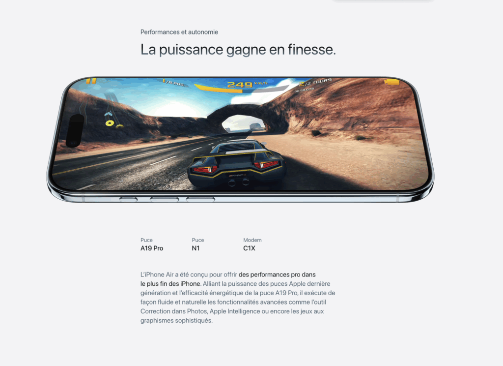 Capture every moment with the dual 48MP camera system, enjoy up to 36 hours of battery life, and recharge quickly with AirCharge 2.0 or USB-C. With its premium finish, powerful 5G connectivity, and iOS 19, the iPhone 17 Air combines elegance and performance to become the ideal everyday device.