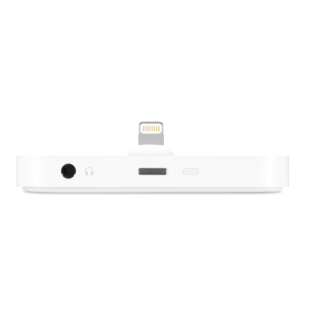 Rechargez et synchronisez tout iPhone équipé du connecteur Lightning grâce à la station d’accueil iPhone Lightning Dock. Elle maintient votre iPhone en position verticale pendant la synchronisation et la recharge, et trouve donc tout naturellement sa place sur un bureau ou un plan de travail. Même dans sa coque Apple, votre iPhone se place sans problème sur la station. Vous pouvez également le déverrouiller ou utiliser Touch ID sans avoir à l’enlever de la station. La station d’accueil iPhone Lightning Dock comporte un port audio permettant l’utilisation d’un casque 3,5 mm avec une télécommande ou une sortie ligne pour connecter des enceintes actives. Elle prend aussi en charge les accessoires Lightning tels que le câble Lightning vers USB (fourni avec votre iPhone). Vous pouvez même communiquer en mode mains libres pendant que votre iPhone recharge.